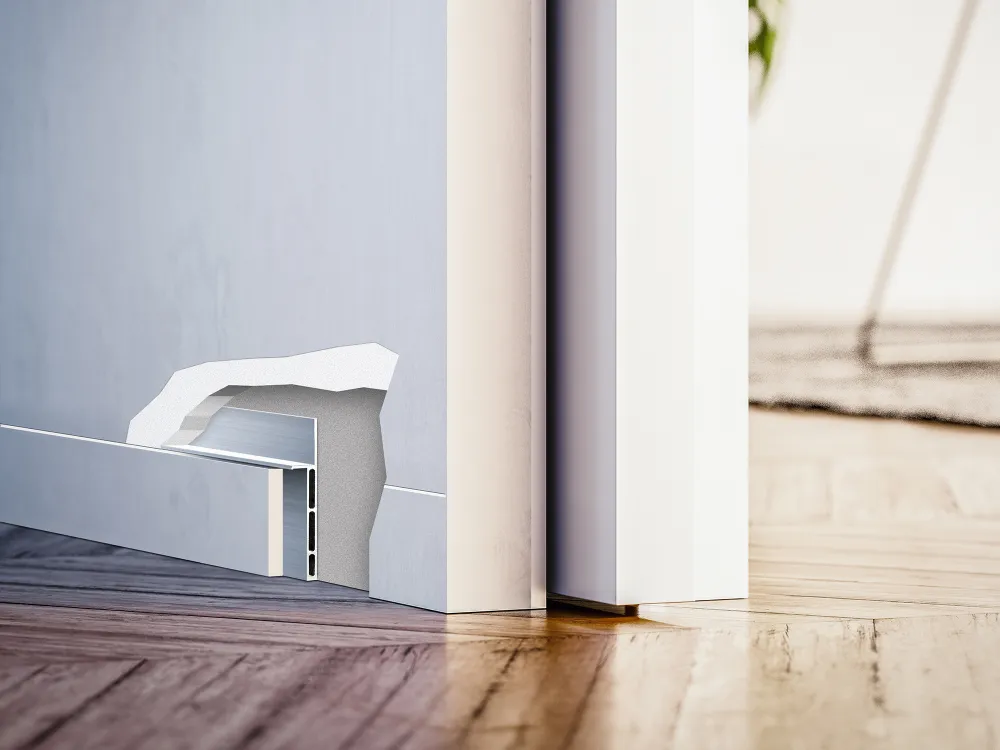 Spre deosebire de plintele tradiționale, acest profil permite instalarea unei plinte perfect încastrate în perete, care rulează de-a lungul peretelui fără a ieși în evidență.